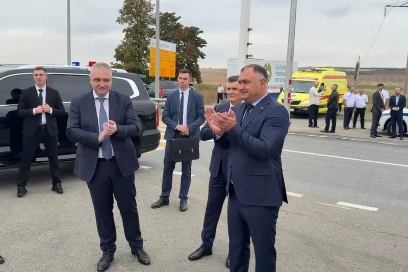 Гостей на границе КЧР торжественно встретил Министр имущества и земельных отношений Роман Баскаев.