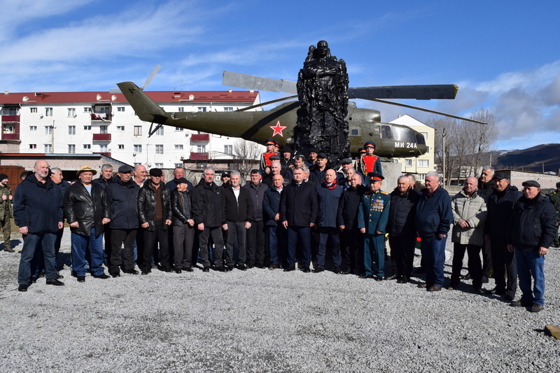 У памятника воинам-интернационалистам, установленном на постаменте вертолете Ми-24, который участвовал в боевых действиях в Афганистане, собрались десятки граждан Южной Осетии, исполнивших свой интернациональный долг и пришедших почтить память павших воинов.