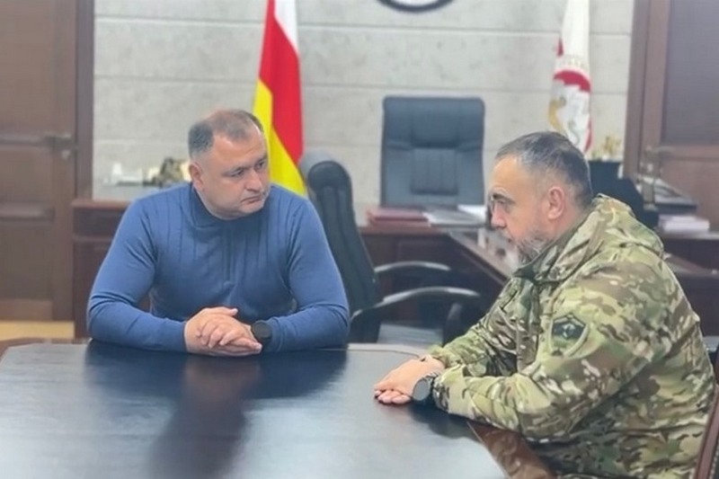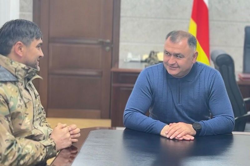 Президент Алан Гаглоев встретился с командиром ОДРО «Алания» Русланом Остаевым (позывной «Скиф») и его заместителем Николаем Туаевым.