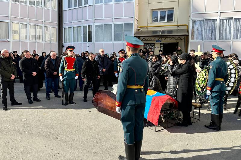 В последний путь героя проводили с воинскими почестями. В траурной церемонии приняли участие Президент Алан Гаглоев, Чрезвычайный и Полномочный Посол РФ в РЮО Марат Кулахметов, Председатель Парламента Алан Маргиев, и.о. Председателя Правительства Дзамболат Тадтаев, представители силовых ведомств, общественности, друзья и сослуживцы бойца.